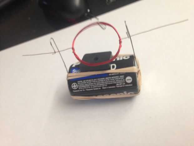 Por: Noé Lachmyr y Christian BovestPaso 1: materiales 2 clips de papel1 banda de caucho1 imánBatería 1 D1 18 pulgadas 26 calibre magnetwirePaso 2: Formar su alambre Para dar forma a su envoltura de alambre el alambre alrededor de la batería de D para