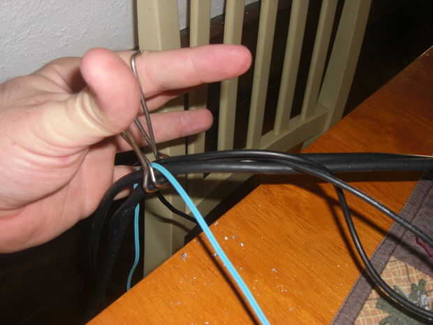 mi nuevo diy, un organizador de cables:componentes:tejido,hilo de coser,máquina de coser,puedes ver las fotos.