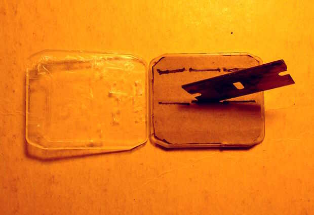 Introduzca un cuchillo en la abertura para cortar el interior del bolsillo. Si se corta hacia abajo en un ángulo ligero podrá se superponen filas de cartas.
