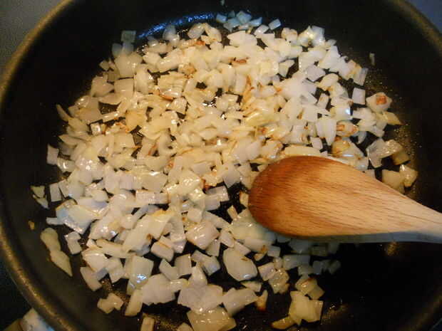 Finalmente picar 2/3rds de una cebolla y añadir a la cacerola, cocinar hasta que estén suaves.