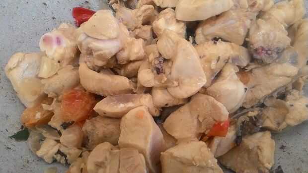 Nota: No necesita añadir agua porque pollo producirá agua... no no uso alta llama... llama mediana es lo suficientemente buena
