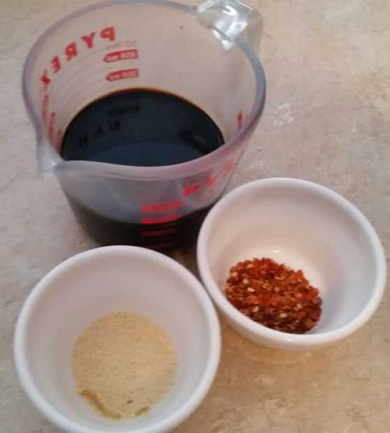 Salsa de soja, ajo, guindilla (agua tal vez)
