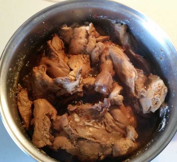Encender la calefacción y deje cocinar, a fuego lento durante 25 minutos más o menos, hasta que la carne se desprenda del hueso. Como no hierva el líquido tu no va para lo cocine demasiado. Uno de esos platos que sabe incluso mejor como recalentar las sobras.