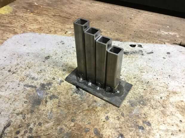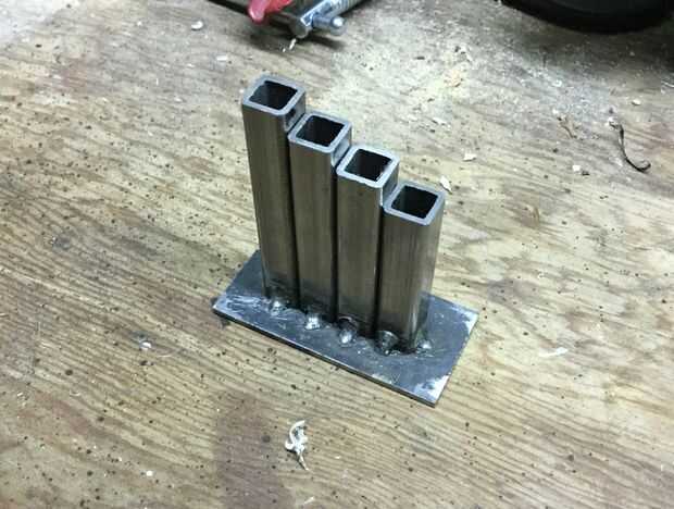 Utiliza un cepillo de alambre y archivos limpiar las soldaduras y el portalápices un agradable aspecto industrial.