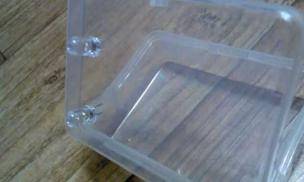 Lo primero que hice fue preparar el recinto estaba usando, que era la pequeña caja de plástico que los pasadores de seguridad. Usé el secador de pelo de mi novia para calentar las pegatinas por lo que podría ser quitados fácilmente (bueno no tengo una pistola real, causa habría utilizado y fundido que cosa realmente rápida).