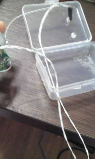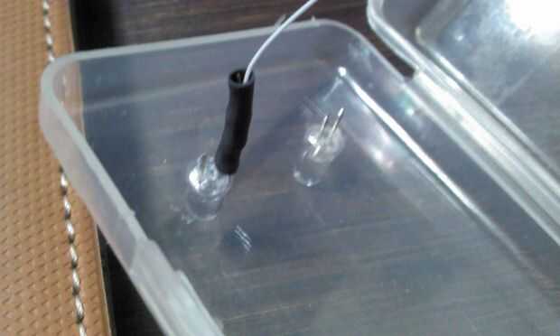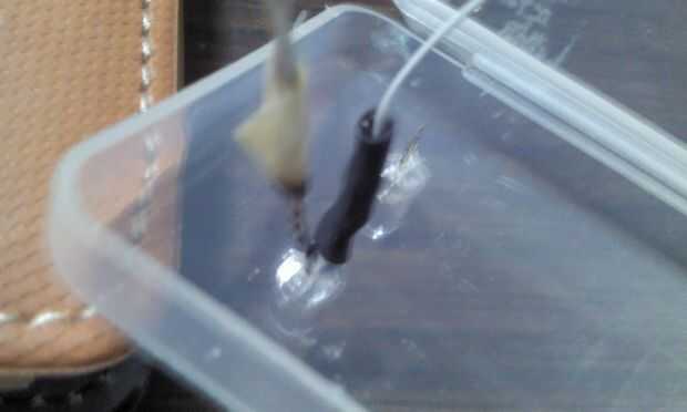 Derritió un pequeño agujero en la parte inferior de la caja y los dos cables trenzados se agotó ese agujero.