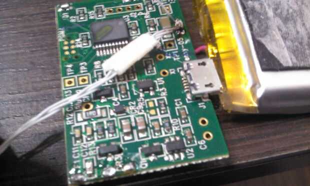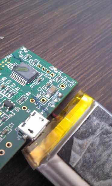 Luego soldar un cable corto a la + lado (donde la batería se conecta a la board). En el otro lado de ese cable, soldado en mi resistencia.