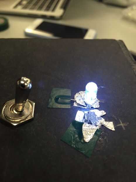 Mueva el interruptor en una dirección y asegúrese de que el LED se enciende. Si no lo hace, el interruptor que las patas del LED son en qué agujero. En este punto, deberá encenderse el LED. Después de esto, la etiqueta los agujeros con positivo y negativo.