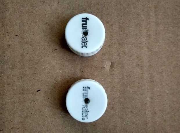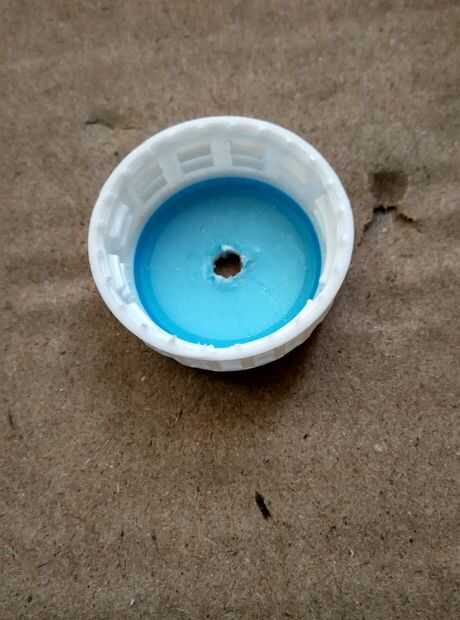 Hacer un agujero limpio suave en ambos de tapa de la botella.