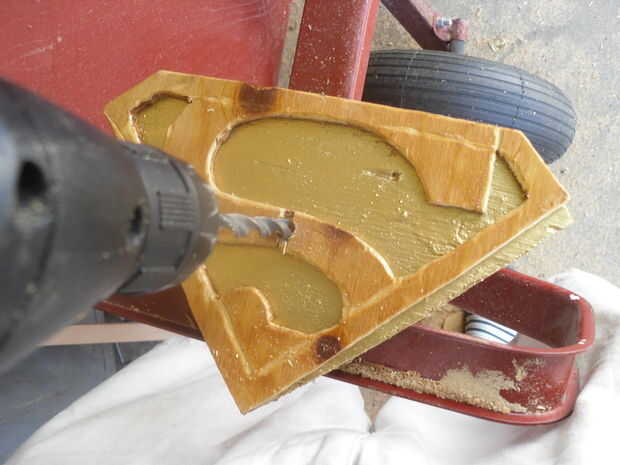 8. una vez seco, taladre un orificio de 3/8 de pulgada en el centro.