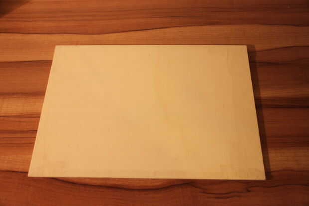 Hombre schneidet ein Stück Folie größer als das Brett aus und klebt es ohne Luftbläschen auf die Fläche. Dann klappt hombre morir Folie um und befestigt sie mit Klebeband extra.