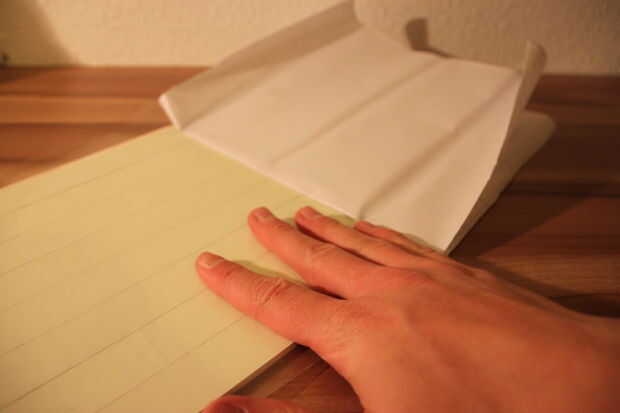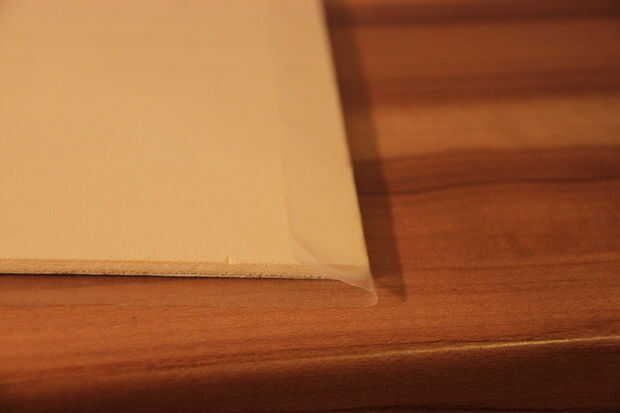 Cortar un trozo de papel más grande que la Junta y pegarla sin burbujas en la superficie. Luego gire la hoja hacia abajo y fíjelo con cinta extra.