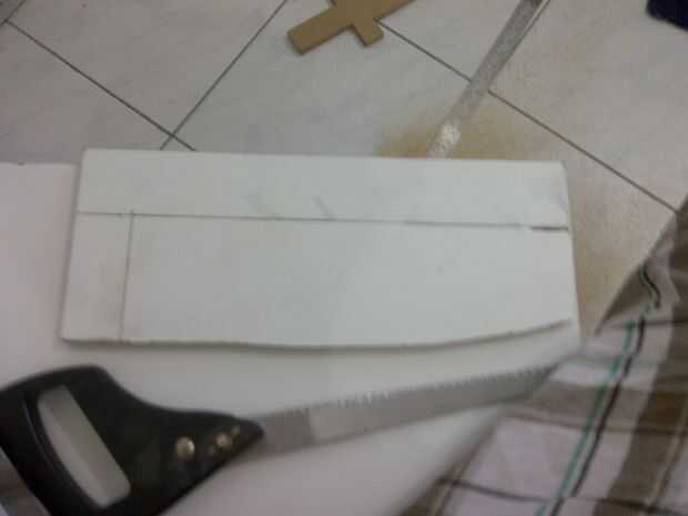 Medir y dibujar la forma básica de la pistola ballesta en la madera de la capa gruesa. Puede cambiar el diseño, pero lo diseñado así por simplicidad y porque solo tengo un serrucho viejo. Cortar la pieza de cuerpo dos veces. He incluido las dimensiones de la imagen.