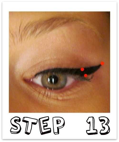 Este es el último paso de completar su línea de acabado. Puesto que ya han dibujado la curvatura de su llamarada en el paso 12, esencialmente debe "conectar los puntos" rellenando el espacio entre la línea extendida de la llamarada y la primera línea gruesa desde el paso 10. He puesto puntos rojos en los lugares donde había dejado las líneas anteriores, todo el espacio entre el triángulo áspero crea necesidades para ser llenado con el trazador de líneas. Si te equivocas tu línea, no se preocupe. Solo agarra otra mano q-TIP, mojar la punta y limpiar con precisión el segmento desordenado sin tener que volver a empezar todo otra vez. Este es el beneficio de hacer la línea en algunas secciones, porque simplemente puede rehacer el segmento que está trabajando sin tener que afectar el otro terminado segmentos.