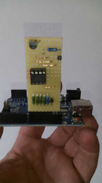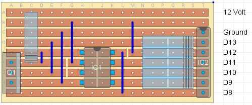 Todo lo que toma son 6 resistencias, un transistor, un pie DIL, una pieza de 9 x 20, de placa perforada y un encabezado de 7 pines macho y por supuesto una fuente de 12 voltios. Y sí, A UNO para pegarlo en.