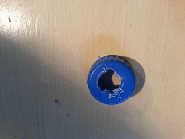 Corte un orificio en la tapa para insertar el tubo en él. Por supuesto, el diámetro depende tubo que tienes.