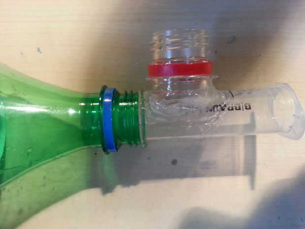 Paso 15: Paso 15: poner la jeringa en el frasco y añadir algunos más caliente pegamento en los bordes si es necesario