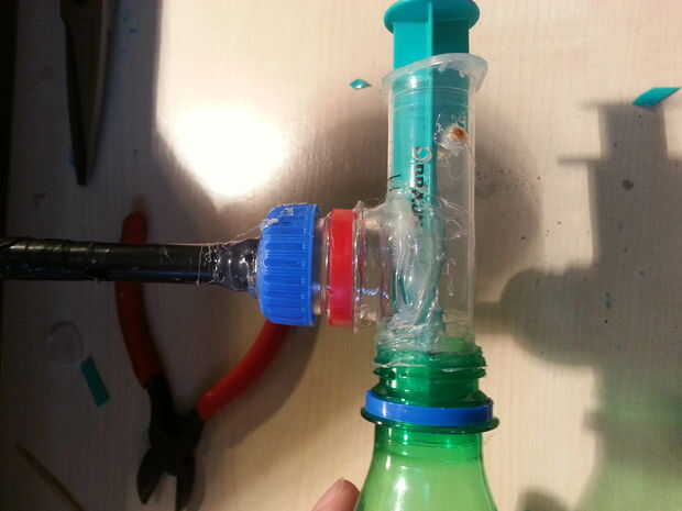 Sencillo y potente rifle de aire con botella y jeringa médica (21 / 22 paso)