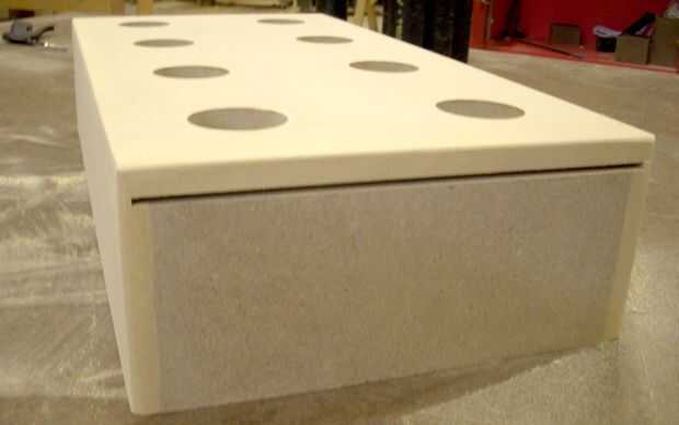 En este punto de vista de la caja parcialmente ensamblada, se puede ver la ranura donde se deslizará la pieza de masonite.
