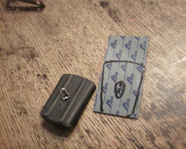 Mida y corte la cinta de velcro trazando la parte inferior de su GPS en la parte posterior del velcro. Sale mi puerta de la batería, para que montara el velcro en el. Asegúrese de cortar los agujeros para los puertos de hardware o acceso y no sellar la batería puerta cerrada. Monte el velcro borroso, no pican en el GPS.