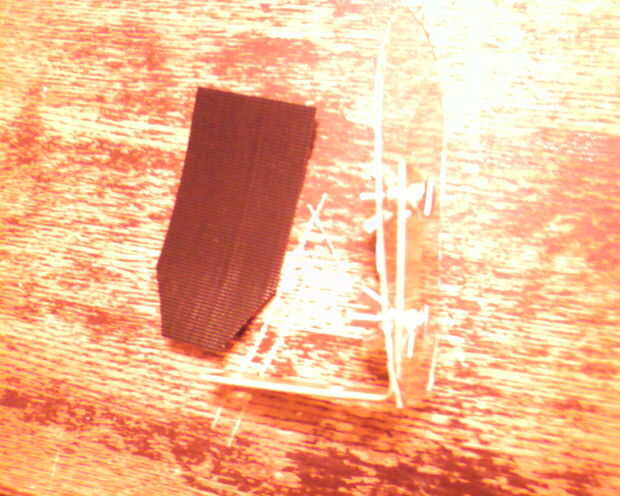 Corte áspera lateral de Velcro (ganchos) para el tamaño de la hoja y la forma que usted midió en el paso 2. Corte una longitud de cable de choque y atar un pequeño lazo en el extremo. Poner el lazo en el perno entre el soporte y una arandela y apriete la tuerca de mariposa. Colocar su GPS en el Monte y pase el cable de descarga a través del GPS una vez, a través de dos tornillos y de vuelta al tornillo que no tiene cordón atado a él. Asegúrese de que está apretado lo que quiere y ate un lazo en el otro extremo. Coloque ese lazo en el otro tornillo de la misma manera.