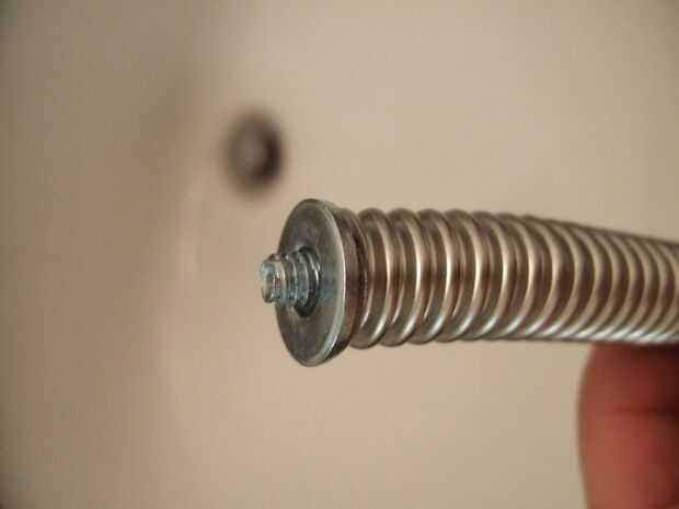 Una vez que el tornillo encaje en el conducto, averiguar cuánto hilo necesita sobresalga firmemente a fin de conectar la cámara. No se olvide de hacer su prueba con una arandela de 1/4" en el lugar.