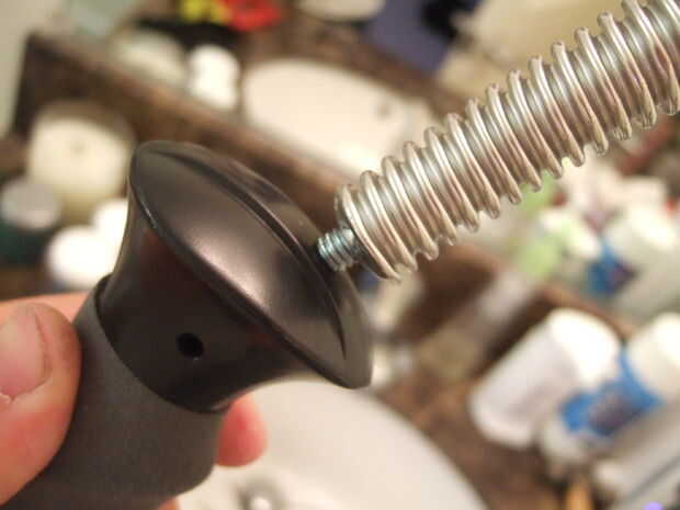 Una vez que tienes el agujero golpeado ligeramente, vuelva a colocar las correas de muñeca y conecte el tubo de conducto flexible que acaba de hacer!