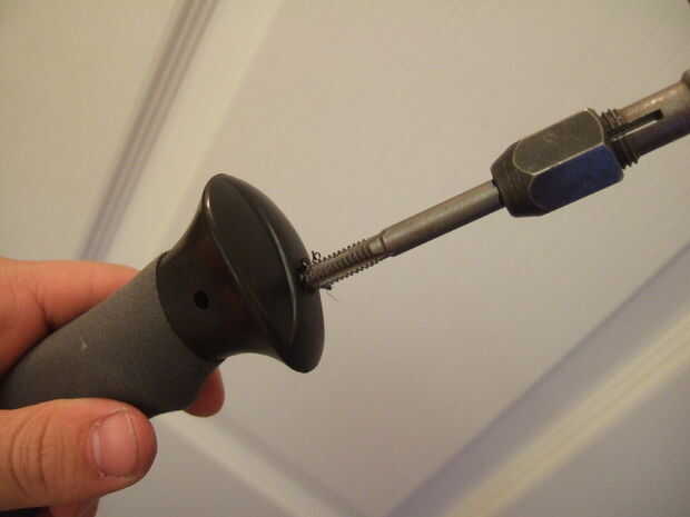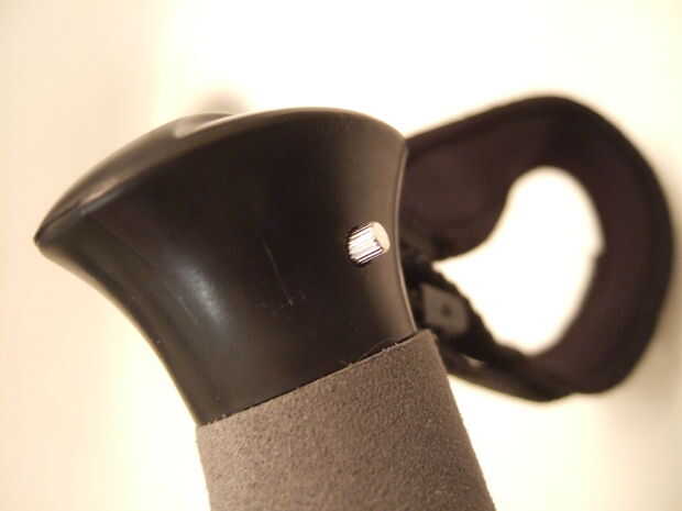 A continuación, toque y haga un orificio de 1/4-20 en la parte superior del poste trekking. Asegúrese de que usted tiene suficiente espesor para por lo menos tres hilos! Si no es así, fácilmente podría terminar pelando las roscas plásticas.