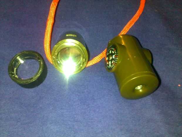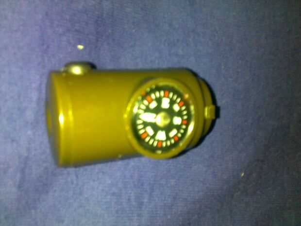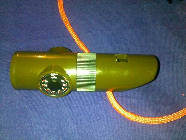 1. silbato supervivencia (silbato, brújula, termómetro, linterna, lupa y espejo de la señal)