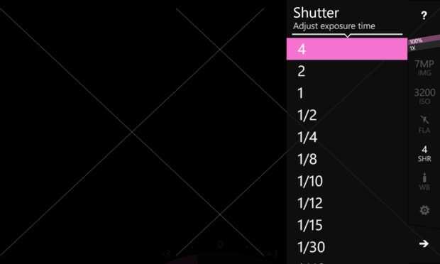 Utilizamos la aplicación Proshot porque tienen característica de lapso de tiempo, pero si quieres hacer una foto todavía puede utilizar la misma configuración de la cámara del Lumia.