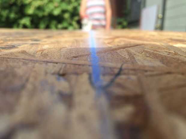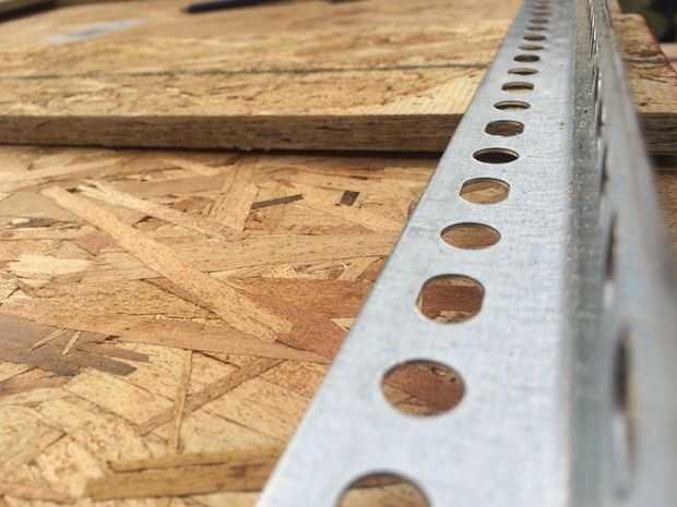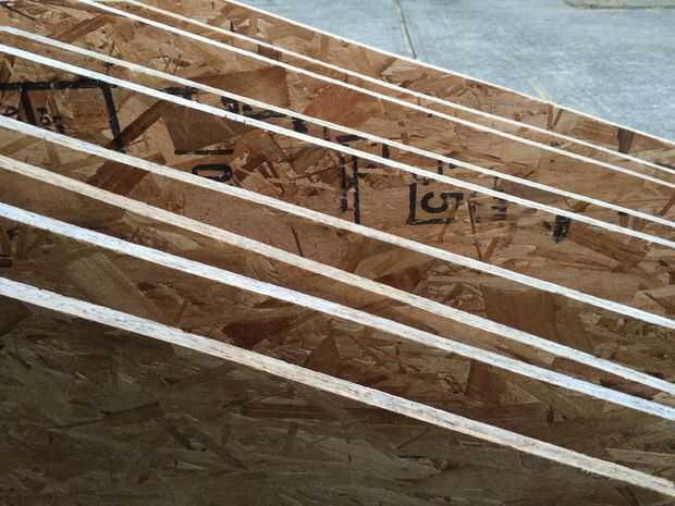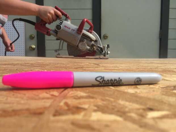 Después de diseñar sus postes, usted querrá medir, marcar y cortar cada pieza de OSB. Entonces te Alinee los postes de soporte de metal con las secciones de OSB y marque los orificios para perforar. Se utilizan un marcador de la línea de tiza (una herramienta simple pero muy útil para marcar líneas rectas) y marcadores de colores brillantes (para marcar los agujeros para perforar).