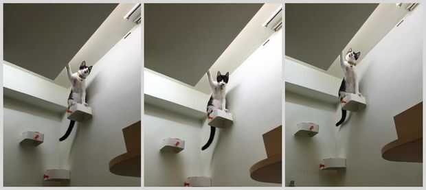 Siempre hemos pensado que sería cool tener una especie de pasarela para nuestro gato skulk y ocultar de manera anterior. Quería diseñar algo para toda la pared, algo que sería un poco artísticos, escultóricos y algo funcional para nosotros (además de