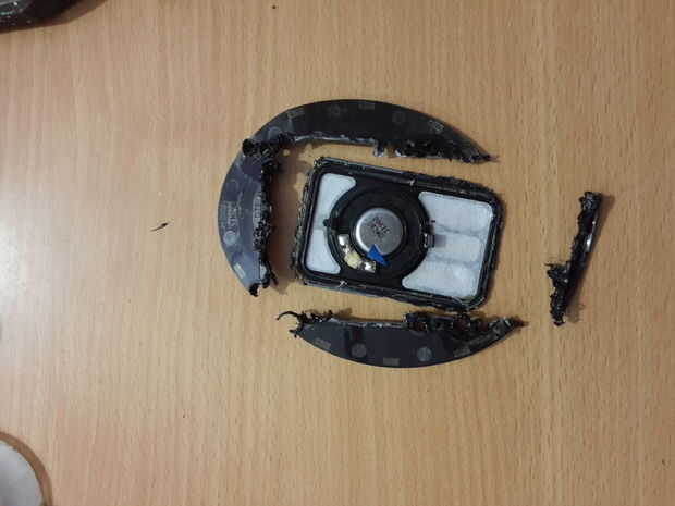 Simplemente rompa-apagado el panel alrededor de la placa del altavoz rectangular con unos alicates, pistola o lo que sea la herramienta de soldadura puede encontrar. Estaba impaciente, así que puse unos agujeros con el soldador y rompió con unos alicates. Mirar la costura de la tapa rectangular y donde circunda el altavoz, no rotura quemadura la costura (las líneas gemelas en la frontera del libro blanco), usted necesitará fijar apropiadamente más adelante en la cubierta.