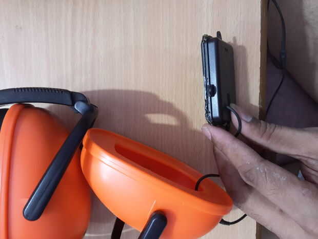 Pase el cable por el orificio en las orejeras, luego poner el manguito de goma en la parte superior del cable. Ahora pase el cable por eso tapa rectangular y soldadura en el controlador del altavoz.