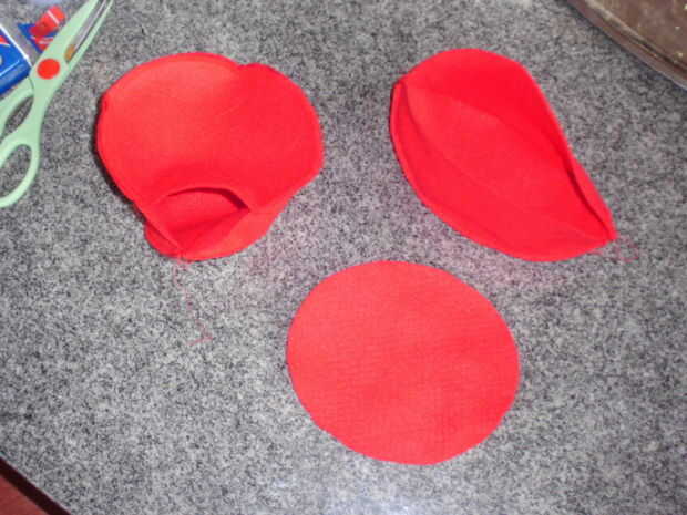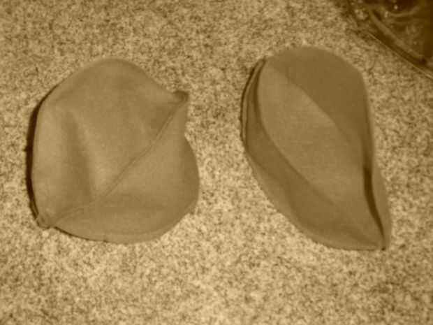 Luego adiviné, quiero decir que calcula el diámetro de dos bolas de media y una plantilla por la forma de las piezas de fieltro. Resultó que eran no exactamente redondas pero un poco alargada. Cortar las piezas de dos forro y había cosido a las mitad-bolas, dejando alrededor de 1" a 1 1/2" hacia fuera para hacer de ellas hacia fuera.