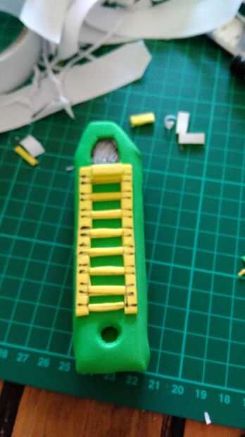 Cubierto en la espuma fina luego recortar el espacio en la parte superior para el interruptor y el agujero en la parte inferior para el LED
