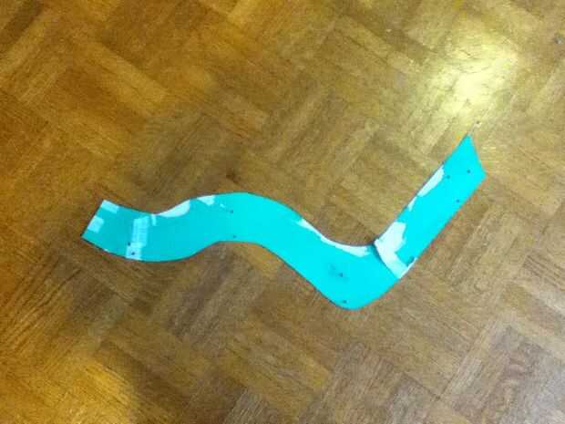 Finalmente, la última pieza es un trapezoide que se usa para rellenar el espacio entre las 2 piezas en la parte inferior. Una vez que tengas todas las piezas, cinta adhesiva firmemente y pruébalo!