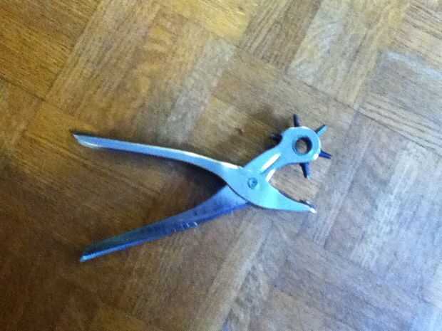 Ahora tienes que rehacer el paso 4 pero con cuero o fleje de gamuza en lugar de cadena. Cuero es una sustancia dura, usé para perforar los agujeros de una perforadora industrial que cuenta con una variedad de tamaños. Si no tienes uno de estos que se puede utilizar un taladro y broca pequeña poco, pero siento mal por ti.