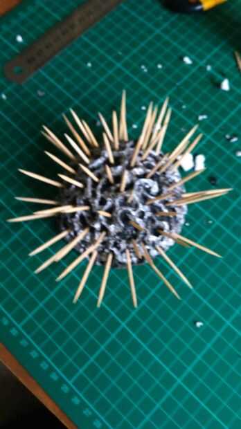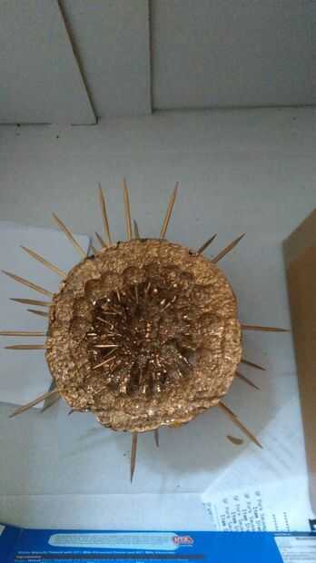con los palillos en su lugar rociar el interior con la pintura en aerosol oro