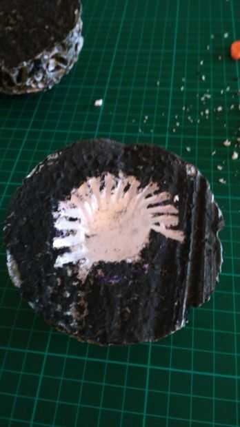 Luego ahuecar parte del interior de cada mitad. Esto va principalmente para ser utilizado para albergar nuestra piedra del falso infinito. Corte mi cuidadosamente con una hoja de oficio.