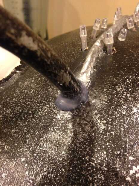 Con el dangly cosa montado (suspensión y LED en el tubo), inserte el tubo en el orificio del frente, unir la caja de batería y pegar, así que el interior. La tubería será flop probablemente alrededor todo raro y no levantarse de la manera que desea que. Manténgalo a donde desea estar, glob caliente pegamento alrededor de él y mantener en su lugar hasta que el pegamento se haya enfriado completamente. Estará su propio.