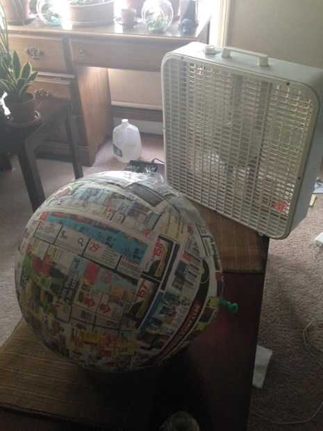 Utilicé un bote grande para sostener el globo mientras trabajaba. Yo descubrí que tenía que cubrir todo pero la parte en la olla, deja secar un poco, vuelta y acabado de la capa.