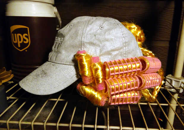2. enrollar los mechones de cabello en rodillos y pegamento caliente les para la tapa