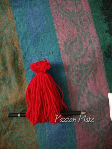 Después de envolver a sacarlo con cuidado. Puede que necesite la ayuda de alguien. Sostenga el hilo apretado y con otro hilo atar alrededor del cuello. Esto formará la cabeza.