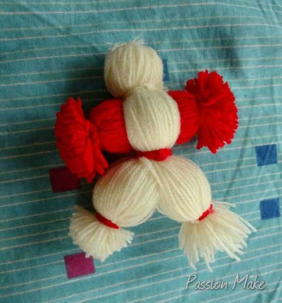 Ahora el pic es auto explicativo. Lo mismo que has hecho por la muñeca de la muchacha obtener los pompones.