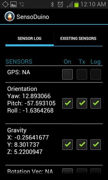 SensoDuino también cuenta con un escáner de Android sensor que mostrará una lista de hardware y sensores de software apoyado por su dispositivo Android, así como el sensor clave especificaciones tales como consumo de energía máximo, resolución, proveedor, etc.. Algunos dispositivos Android tienen sensores duplicados de diferentes proveedores. El SDK de Android vuelve el sensor por defecto.