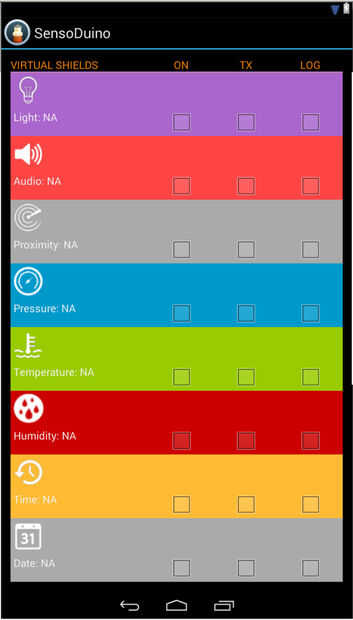 - 19 de noviembre de 2013: SensoDuino 0.159 está hacia fuera. Fecha teléfono Android (y, m, d) y tiempo (h, m, s) se admiten como sensores. Soporte para Android KitKat (4.4/API 19).