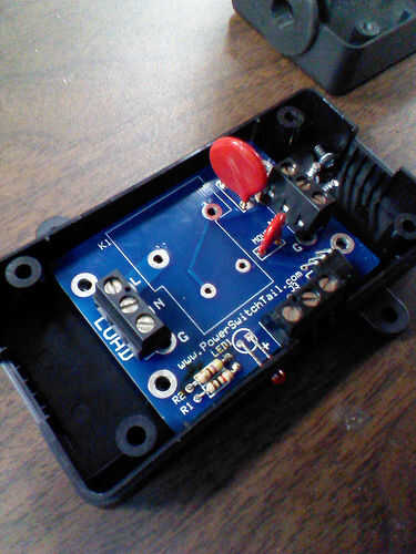 Una cosa que me había confundido un rato es que el poder va a la derecha de la Junta y a la izquierda. Tuve que invertir al principio y no podría averiguar por qué no ha funcionado. (Gracias, Steve de PowerSwitch para cola por tu paciencia me ayudar a solucionar esto.)