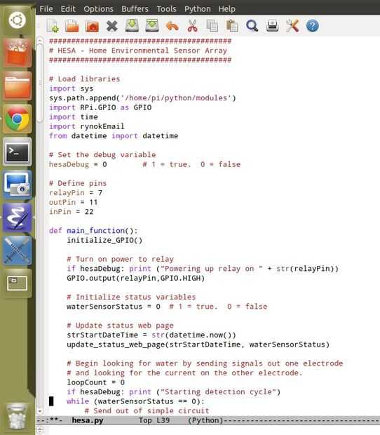 Escribí un pequeño programa usando python para controlar las características de la HESA. El programa principal se llama hesa.py. También hice un módulo de correo electrónico llamada rynokEmail.py. El módulo de correo electrónico puede ser utilizado en otros programas. Los enlaces te llevarán al código fuente.