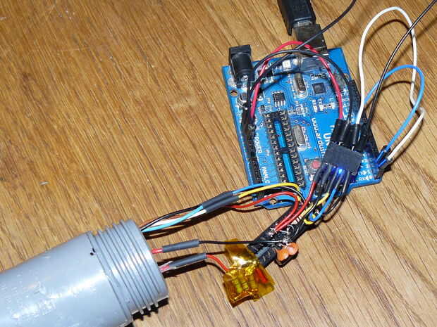 Yo soldado un encabezado a los 5V, ground, reset, rx y tx, así que me puedo conectar Arduino de mi sensor a un Arduino uno que tiene el chip Atmega quitado. De esta manera puedo programar el Arduino lo haría con cualquier otro Arduino.